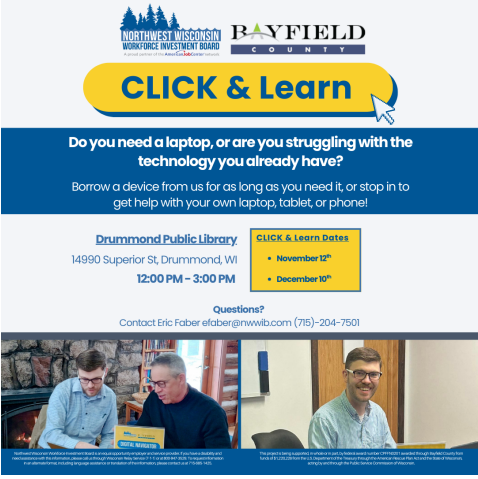 Click and Learn Calendar All Bayfield County Library Schedules Drummond LibraryJuly 17, 2025Drummond Public Library Facebook0 Twitter LinkedIn0 Reddit Tumblr Pinterest0 0 Likes
